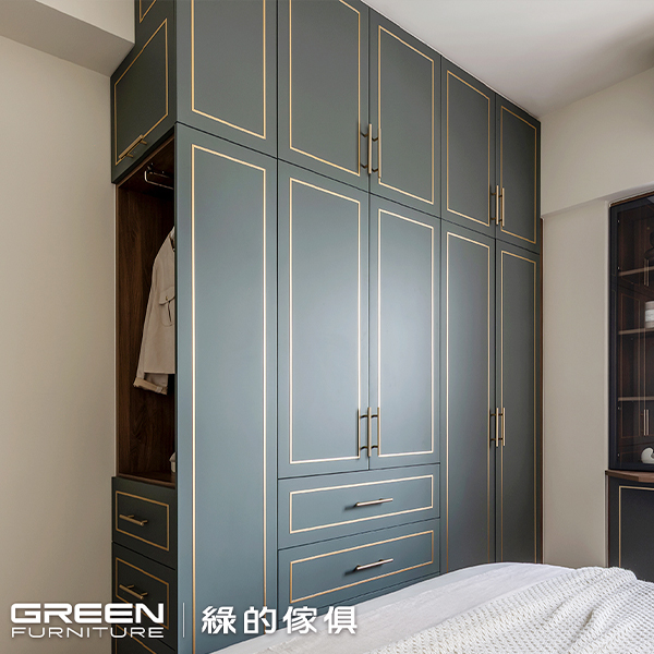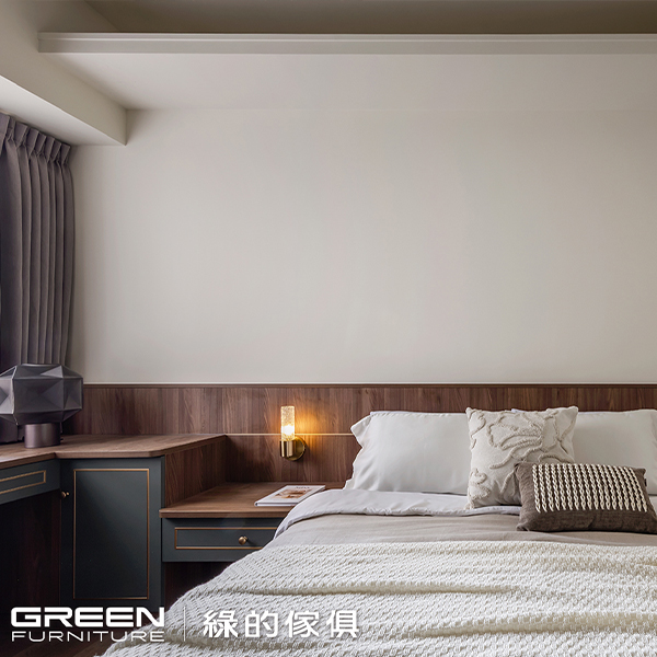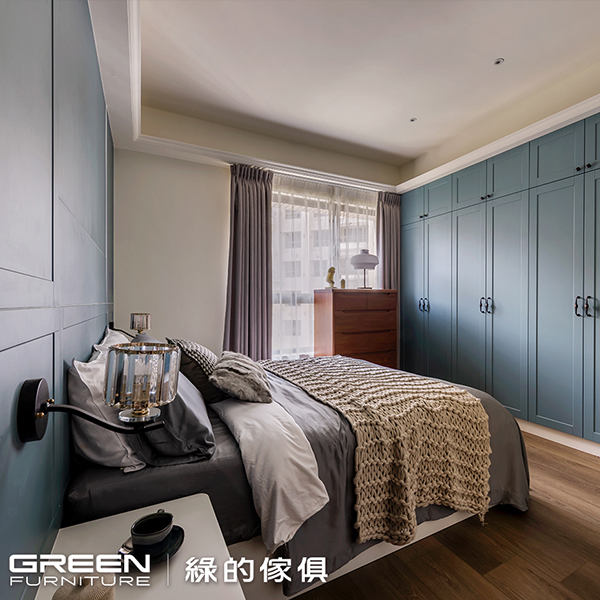 主臥以藍白呼應靜謐感,次臥則以橄欖綠鋪陳柔和生命力