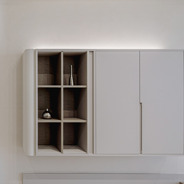 玄關線板與書房矮牆則搭配淡灰系的河岸灰,展現穩重內斂的設計語彙。