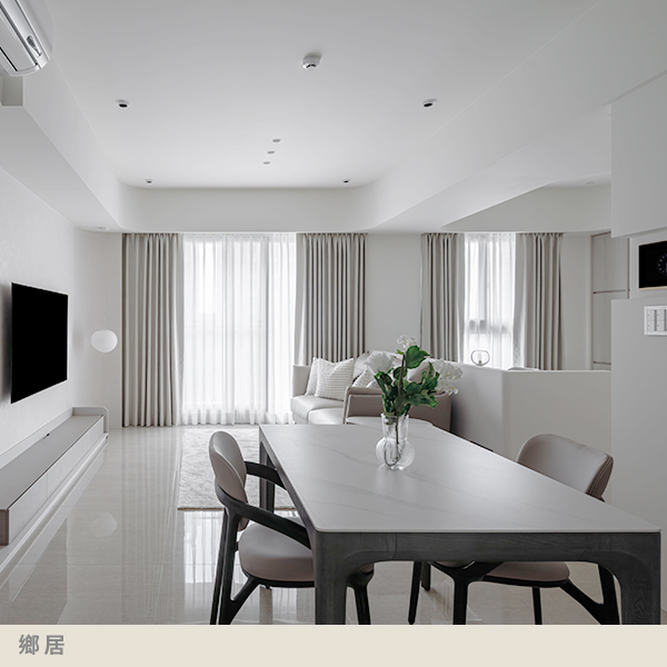 本案以鄉居色為全室基調,營造溫潤沉靜的生活氛圍,整體空間在自然色系的鋪陳下,展現簡約又富層次的現代美學。