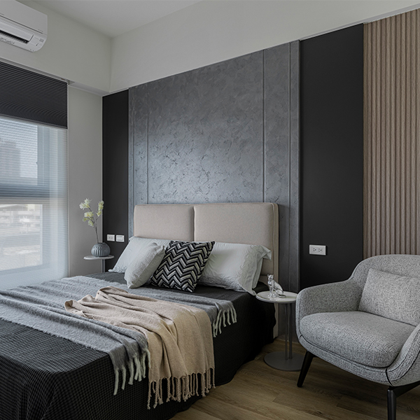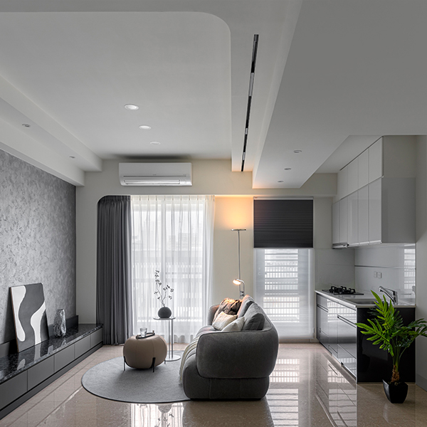 現代極簡風格與低干擾的設計語彙,整體色調以中性灰,黑與白為主,展現出理性與沉穩的美學,同時利用質材的變化、光影的運用,創造出層次感與空間張力。