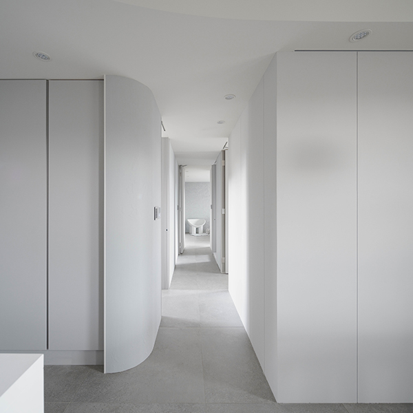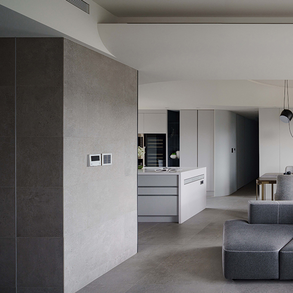 此案為四口之家打造寧靜舒適的新空間,以灰白色調的鄉居色營造純淨氛圍,並透過燈光設計展現光影交錯之美。