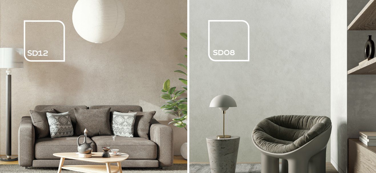 霧面帶有微絨毛的磨砂觸感及立體視覺效果的藝術牆面漆。