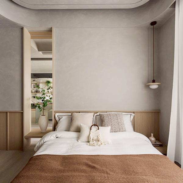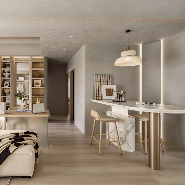 質地取代顏色成為主角,讓光與觸感共同書寫空間的溫度。這是一種節制的美學,在理性結構中包容感性的呼吸。
